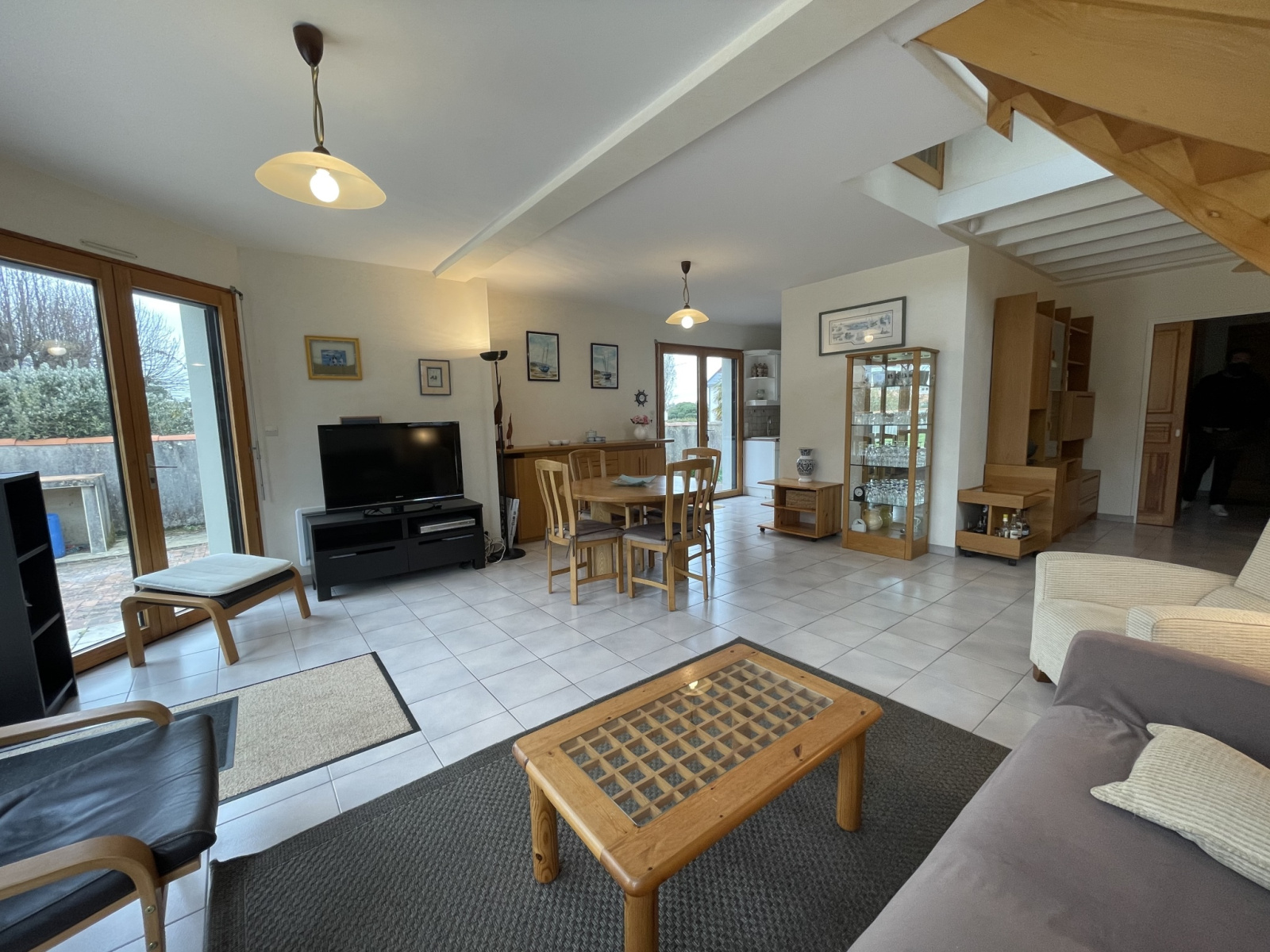 Entrée, pièce de vie lumineuse avec coin salon et espace repas pour 6 à 10 convives. Cuisine aménagée et équipée : plaque de cuisson, hotte, petit réfrigérateur, lave-vaisselle, petit four, petits électroménagers. Arrière-cuisine : réfrigérateur, congélateur, micro-onde, lave-linge, douche pour les retours de plage. Chambre 1 : un lit 160 électrique, télévision, accès salle de bains : baignoire, lavabo. wc. A l'étage : palier avec canapé clic-clac, chambre 2 : un lit 140, rangement. Chambre 3 : un lit 140, rangement. Chambre 4 : 2 lits simples superposés, rangement. Salle de bains avec wc.