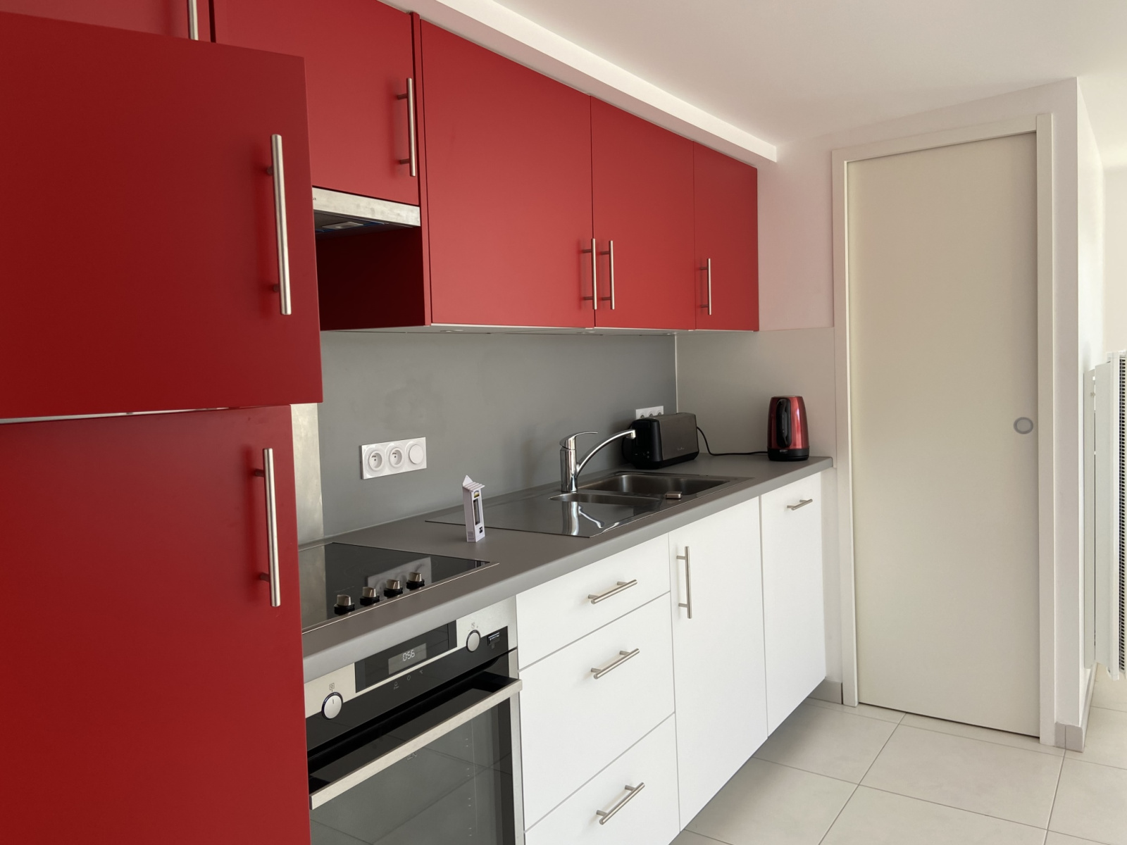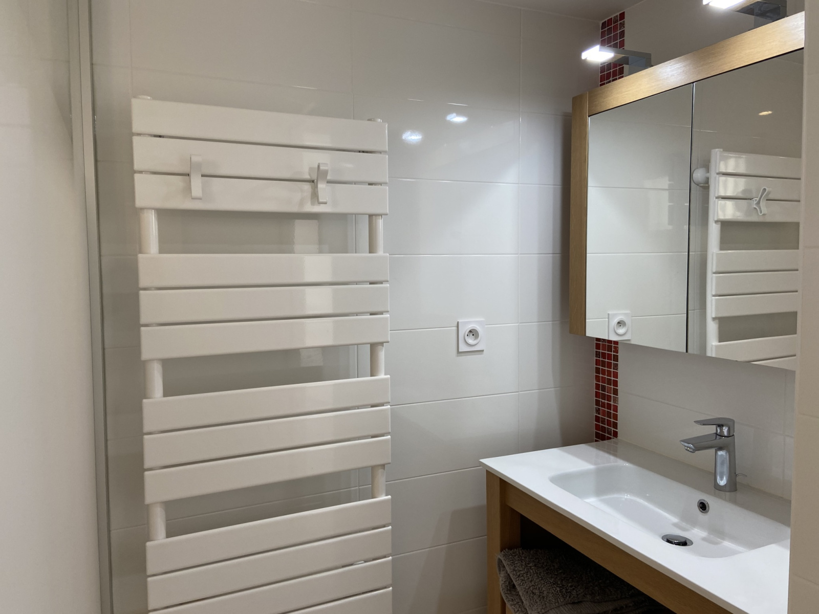 Une pièce de vie : table pour 6 convives, canapé convertible, télévision, connexion internet. Cuisine aménagée et équipée : plaque de cuisson, four, réfrigérateur avec petite congélation, micro-onde, lave-vaisselle, petits électroménagers. Buanderie : lave-linge. Chambre 1 : un lit double 140, rangements. Chambre 2 : deux lits simples 80, rangement. Une salle d'eau : douche italienne, lavabo, sèche-serviette.