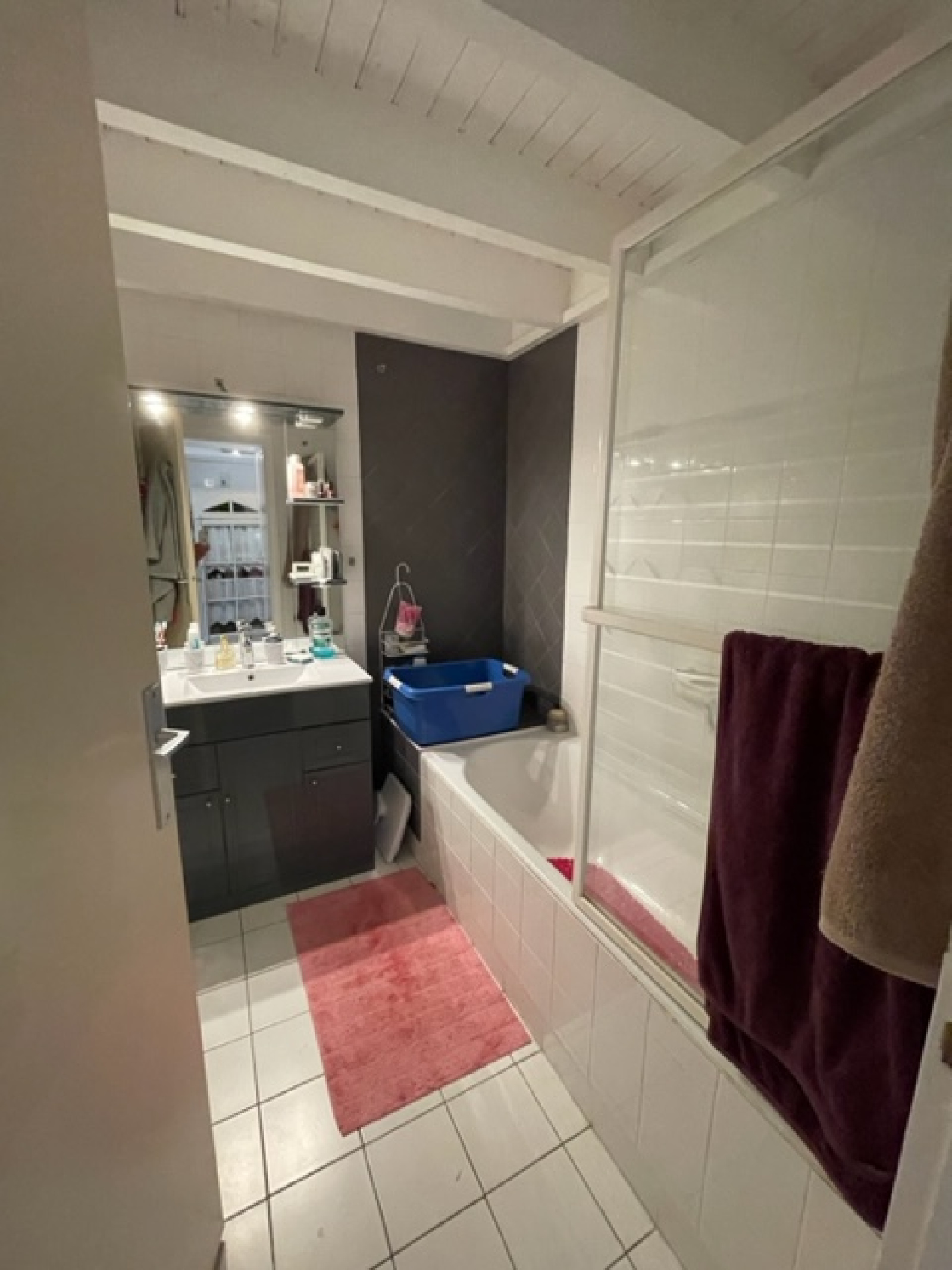 Une chambre, salle de bains, wc séparé.